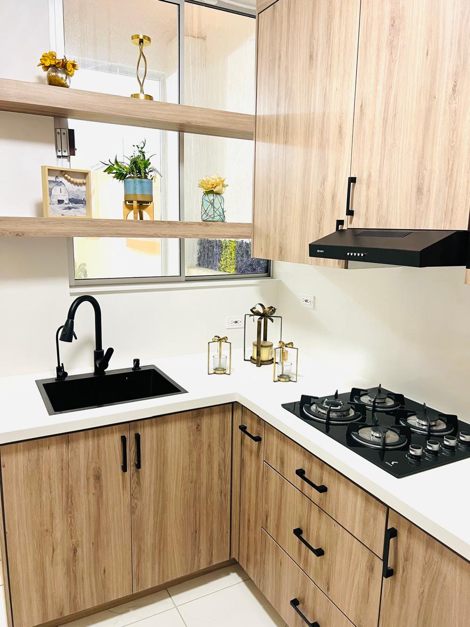 • 🍳 Cocina nueva con placa de cuarzo, estufa y refrigerador.